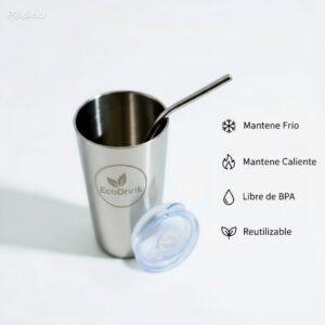 Disfruta de tus bebidas a la temperatura perfecta con el vaso térmico EcoDrink de acero inoxidable. Diseñado para mantener tus líquidos fríos o calientes por más tiempo, este vaso es la opción ideal para café, té, jugos o smoothies.