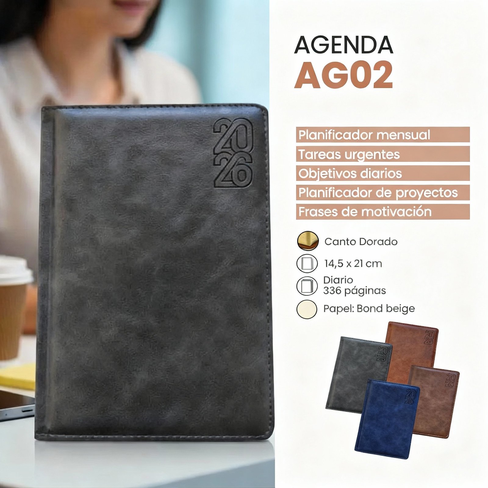 Eleva tu planificación diaria con la Agenda Ejecutiva AG02 (Edición 2026), creada para quienes buscan organización con un toque de lujo. Su cubierta tipo cuero, acabados de alta calidad y canto dorado la convierten en un accesorio sofisticado para la oficina, los estudios o el manejo de proyectos personales.
