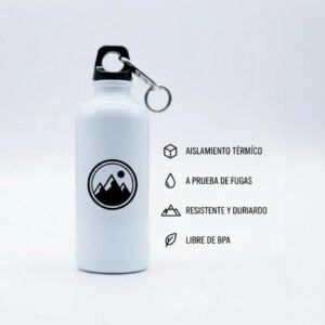 Descubre la botella metálica personalizada con mosquetón, diseñada para acompañarte en cada aventura. Con aislamiento térmico de alta calidad, mantiene la temperatura de tus bebidas por más tiempo, ideal para mantener tu agua fresca o tu café caliente durante tus actividades diarias.