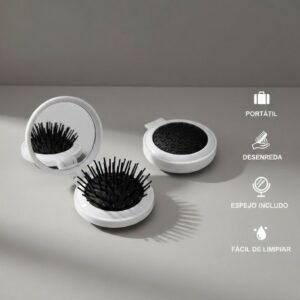 Cepillo Compacto con Espejo Incluido – Portátil, Desenredante y Práctico para el Día a Día