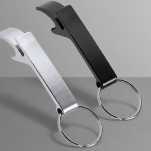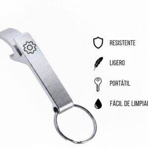 Gracias a su anillo metálico, puedes colocarlo fácilmente en tus llaves, mochila o cinturón, convirtiéndolo en un accesorio portátil e indispensable para abrir botellas donde sea que estés. Su superficie metálica lisa lo hace fácil de limpiar y personalizable con el logotipo de tu empresa, ideal para campañas de merchandising o regalos corporativos.