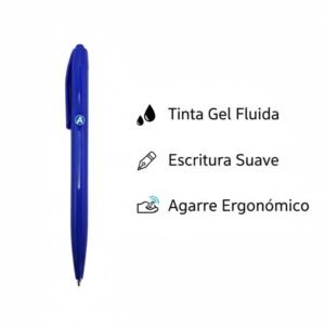 El bolígrafo plástico azul con tinta gel fluida es la opción ideal para quienes buscan un artículo de escritura práctico, cómodo y económico. Su diseño ligero con agarre ergonómico garantiza comodidad en el uso diario, mientras que su tinta gel suave ofrece un trazo uniforme y continuo, perfecto para estudiantes, profesionales y uso en oficina.