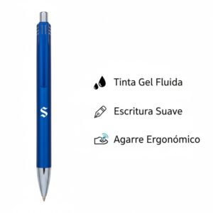El bolígrafo metálico azul con tinta gel fluida es una opción moderna, elegante y funcional para estudiantes, profesionales y empresas que buscan proyectar calidad y estilo. Su diseño en color azul metálico con detalles cromados lo convierte en un accesorio llamativo, mientras que su tinta gel de alta precisión garantiza una escritura suave, continua y sin manchas.