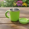 Fabricada en acero inoxidable de alta resistencia, esta taza combina durabilidad, estilo y funcionalidad, siendo perfecta como producto de merchandising, regalos corporativos o accesorios promocionales.