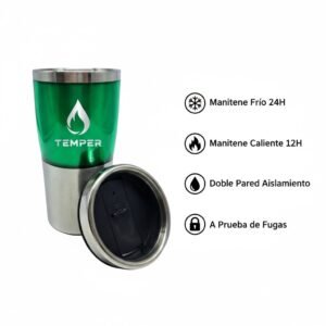 Disfruta tus bebidas siempre a la temperatura ideal con este vaso térmico Temper de acero inoxidable y doble pared aislante. Diseñado para conservar líquidos fríos hasta 24 horas y calientes hasta 12 horas, es el compañero perfecto para la oficina, el coche, viajes o actividades al aire libre.