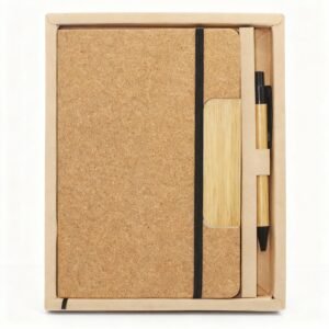Inspira responsabilidad ambiental con este set ecológico premium, compuesto por una libreta con tapa de corcho natural y detalles en bambú, acompañada de un bolígrafo elaborado con materiales biodegradables. Su empaque de cartón kraft refuerza su compromiso con el medio ambiente, ofreciendo una presentación lista para regalar o usar en eventos corporativos sostenibles.