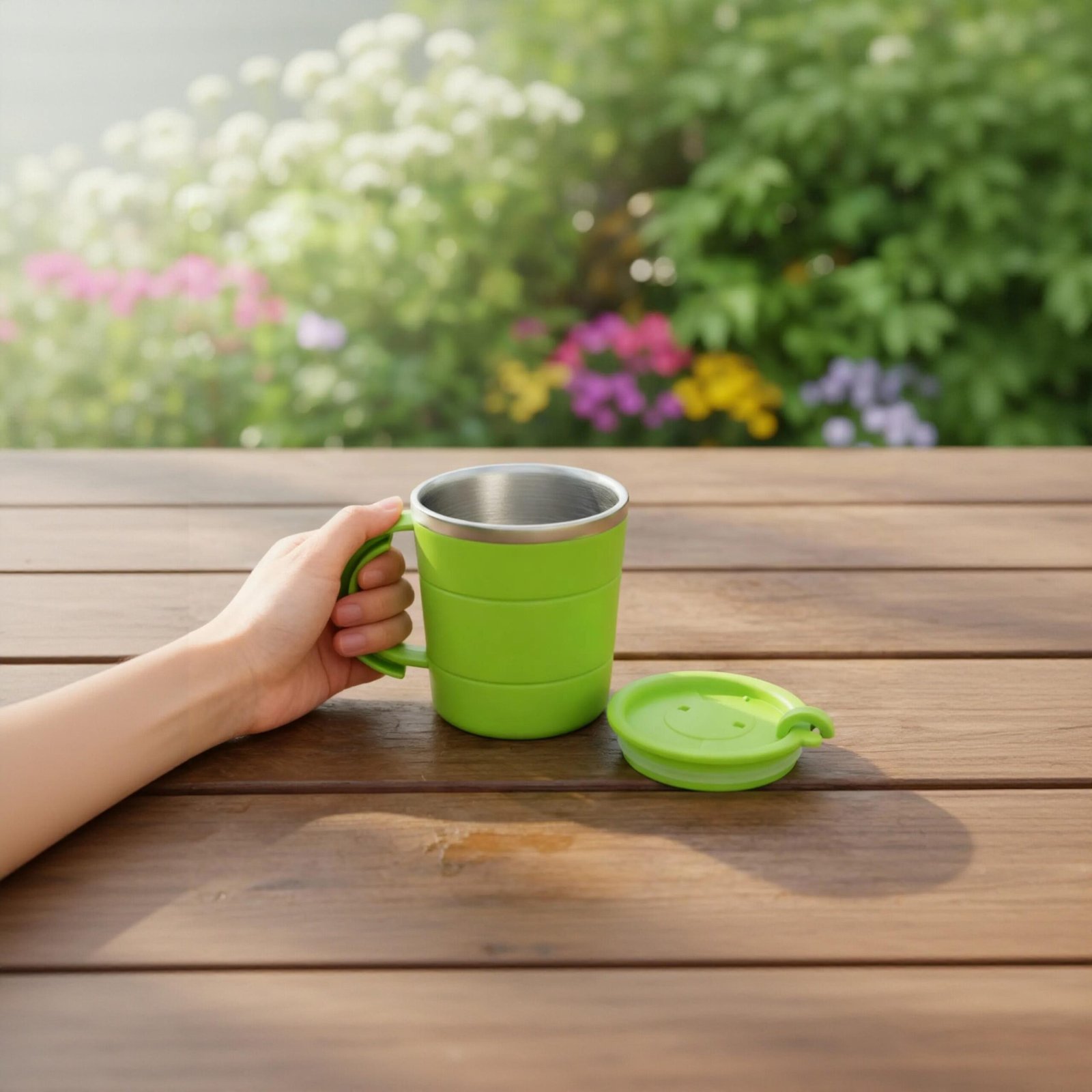 Mantén tus bebidas siempre a la temperatura ideal con este mug térmico de acero inoxidable con tapa hermética. Su diseño práctico y colorido en verde lo convierte en el accesorio perfecto para la oficina, el hogar, viajes o actividades al aire libre.