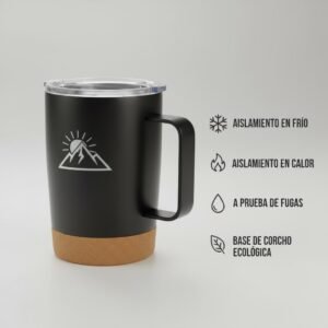 La base de corcho ecológica no solo aporta un toque natural y elegante, sino que también protege las superficies del calor y mejora la estabilidad del vaso. Fabricada con materiales resistentes y duraderos, esta taza es ideal para el trabajo, viajes o actividades al aire libre.