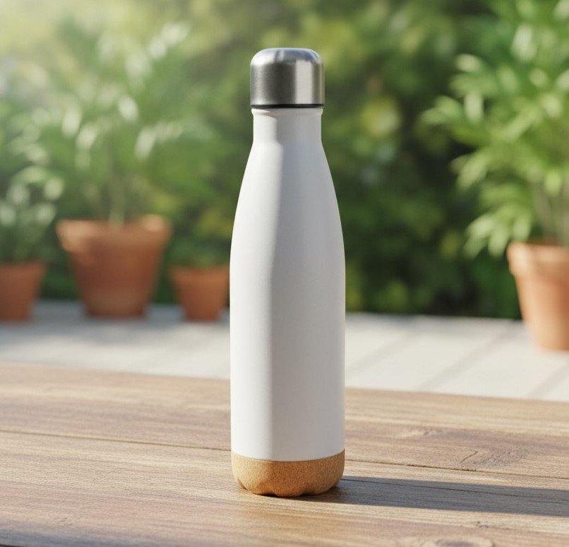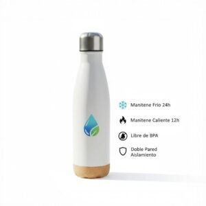 Hidrátate de forma elegante y sostenible con la Botella Térmica con Base de Corcho Natural, diseñada para mantener tus bebidas frías o calientes durante más tiempo. Su estructura de acero inoxidable ofrece alta resistencia y durabilidad, mientras que su base de corcho proporciona un toque natural, mejora el agarre y protege las superficies de golpes y rayaduras.