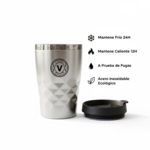 Su tapa a prueba de fugas brinda seguridad en cada movimiento, mientras que el acabado de acero inoxidable lo hace resistente, elegante y sostenible. Además, su diseño ergonómico con textura diamantada no solo aporta un estilo moderno, sino también un mejor agarre.