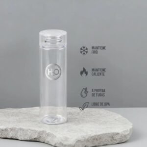 Botella Transparente H2O | Mantiene Bebidas Frías y Calientes | Libre de BPA y A Prueba de Fugas | Ideal para Oficina, Gimnasio y Merchandising Personalizado